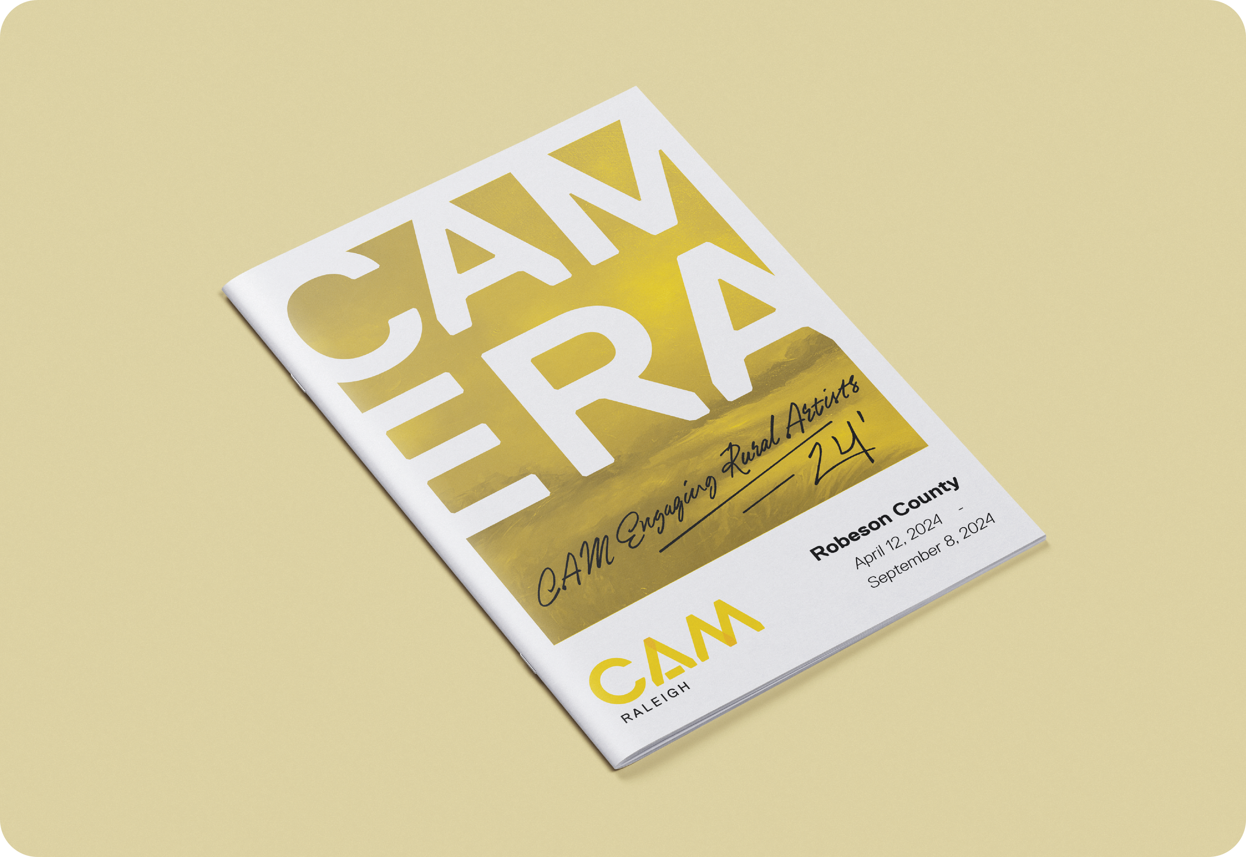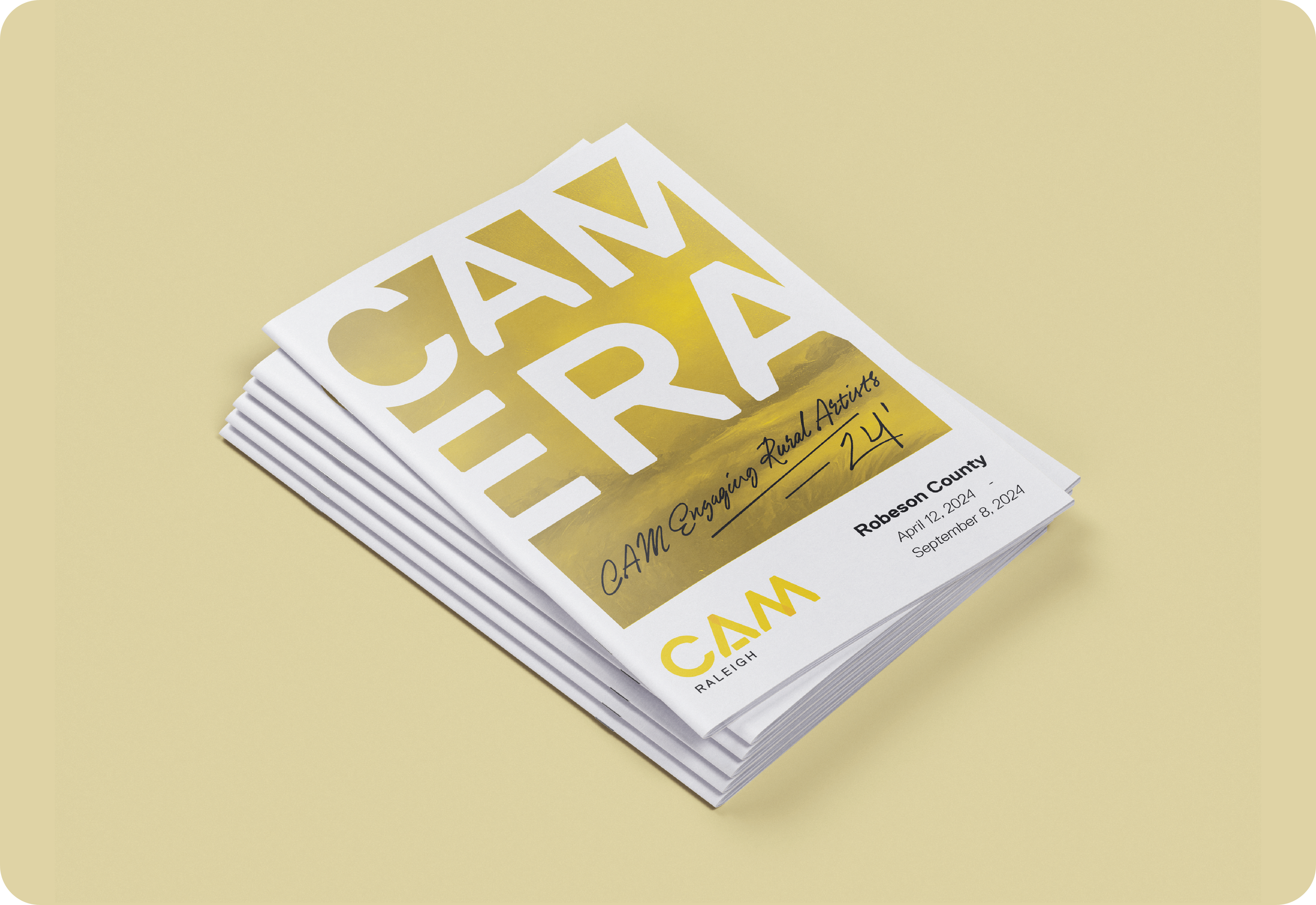 Designed for CAM Raleigh, this catalog highlights the work of several artists based in Robeson County, NC. Each spread pairs striking visuals of each artwork with personal reflections from the artists, offering insight into their creative processes and lived experiences. This project showcases thoughtful page composition, refined typography, and cohesive visual storytelling.